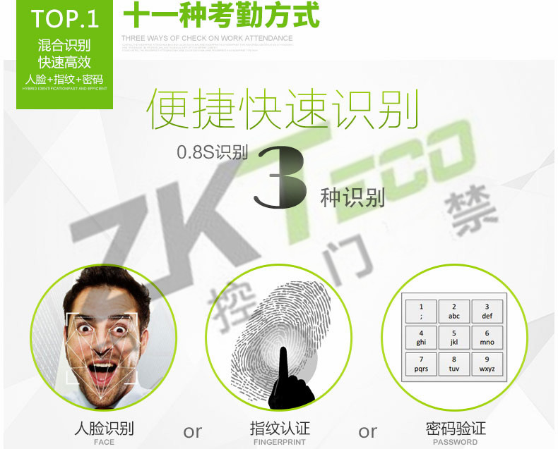 該產品采用了中控科技最新的ZEM600核心板,ZKFinger10.0指紋面部混合識別算法,容量大,識別速度快,集成高分辨率夜視紅外和彩色雙攝像頭功能,適用范圍廣,不受外界光線的影響,無論是在強光下還是在黑暗中也能進行有效識別。該系列已經通過了超過10萬面部數據庫長達2年的測試,同時該算法也在美國San Jose大學年度測試中名列前矛,在用戶舒適度方面獲得了最佳評分。iFace采用了嵌入式中控Multi-Bio CPU,主頻為630MHZ,可以處理高達1:20000的1:N速度,符合人體工程學的外觀設計,工業設計由德國專業公司主導完成,模具采用了PC材料+蝕紋工藝+鏡面工藝,采集比對就如照鏡子一般,支持4.3寸全觸摸TFT,僅有6個狀態功能鍵,其它按鍵在TFT上全觸摸操作。標配TCP/IP通訊方式,支持跨網段跨網關連接。